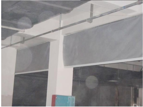 擋煙垂壁材料及零部件:擋煙垂壁所用的各種原材料必須符合相應國家標準或行業標準的規定;擋煙垂壁所用的電機及控制箱(含按鈕盒)應是經國家檢測機構檢驗合格的產品;擋煙垂壁擋煙部件在(200+15)℃,(25+5)Pa壓差時的漏煙量不大于25m/(m·h);卷簾式擋煙垂壁擋煙部件若由兩塊或兩塊以上織物縫制時,其搭接寬度應不小于20mm;單節擋煙垂壁的寬度不能滿足防煙分區要求時,可用多節垂壁以搭接的形式安裝使用,且搭接寬度應滿足:卷簾式擋煙垂壁應不小于100mm,翻板式擋煙垂壁應不小于20mm;擋煙垂壁邊沿與建筑結構表面應保持最小距離,此距離不應大于20mm;卷簾式擋煙垂壁必須設置重量足夠的底梁,以保證垂壁運行的順利、平穩。